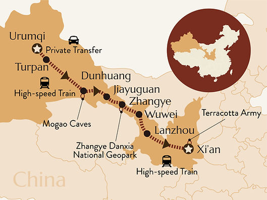 Venture on a 12-day journey along the historic Silk Road, exploring dramatic deserts, striking geological formations, and UNESCO World Heritage Sites. In Urumqi, visit the pristine Heavenly Lake of Tianshan and the vibrant Xinjiang International Grand Bazaar, where natural beauty meets local culture. Turpan showcases the ancient Gaochang City, the ingenious Karez Irrigation System, the red cliffs of the Flaming Mountains, and a local Uyghur family visit for authentic cultural immersion. In Dunhuang & Jiayuguan, experience Mingsha Mountain, Crescent Lake, the world-renowned Mogao Grottoes, and the historic Jiayuguan Fortress. Conclude in Xi’an with the Terracotta Army, Ancient City Wall, Big Wild Goose Pagoda, and the bustling Muslim Quarter, blending archaeology, architecture, and local traditions.